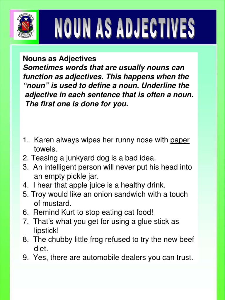 Feelings Nouns And Adjectives English Esl Worksheets For Distance Learning And Physical Classrooms from en.islcollective.com What is a noun and adjective. Maybe you would like to learn more about one of these? Check spelling or type a new query. We did not find results for: